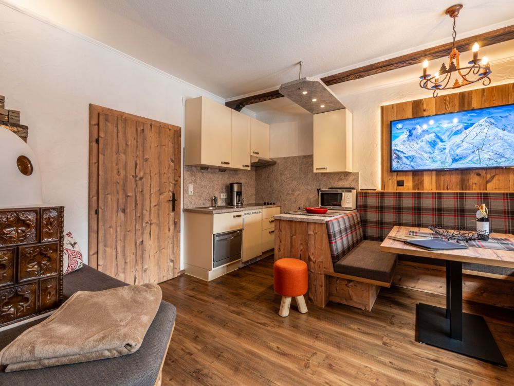 - Neu renovierter trendiger Wohnraum im "Tirol Living Stil" mit offener voll ausgestatteter Küche mit großzügiger Essecke, Relaxecke mit Liegemöglichkeit, E-Herd mit Cerankochfeld, Mikrowelle, Toaster, WMF – Filterkaffeemaschine, Wasserkocher