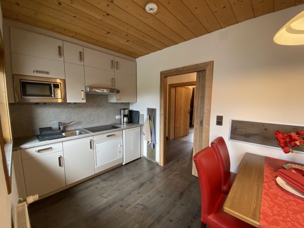 - Voll ausgestattete Küche mit Esstisch, Spülmaschine, E-Herd mit Cerankochfeld, WMF-Kaffeefiltermaschine und Kaffeepadmaschine, Wasserkocher, Toaster, Eierkocher