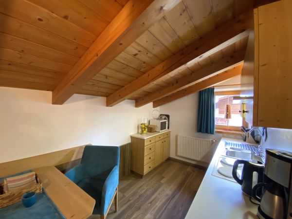 - Voll ausgestattete Küche mit kleiner Essecke, Spülmaschine, E-Herd, WMF-Filter-Kaffeemaschine, Wasserkocher, Toaster, Mikrowelle, Eierkocher