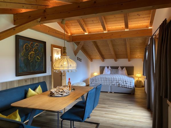 - Gemütlicher offener Wohn-Schlafraum mit klassisch, traditionellen Wohnelementen aus Holz